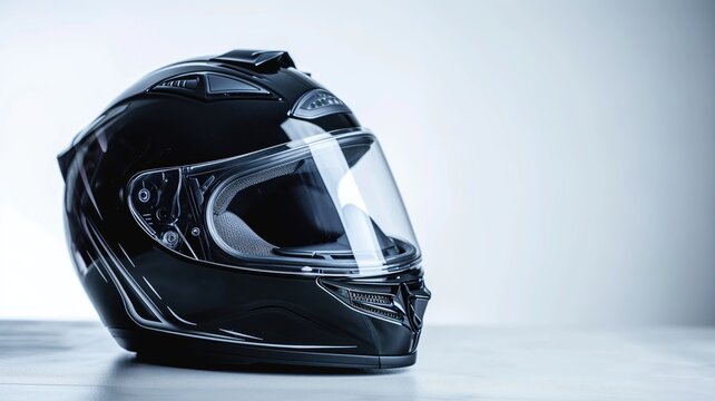 Stylish black motorcycle helmet on a white gradient background