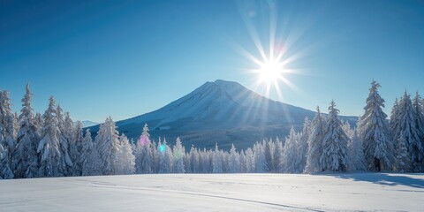 Majestic Carpathian Mountains in winter. Wonderful Wintry Landscape. Awesome alpine Highland at Sunny day. Amazing view on snowcovered mountains and white spruces under Sunlight sparkling in the snow