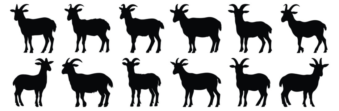Goat silhouettes set, animal pack of vector silhouette design, isolated background.