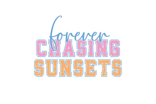 Forever Chasing Sunsets, Retro Summer Varsity PNG Sublimation T Shirt Design
