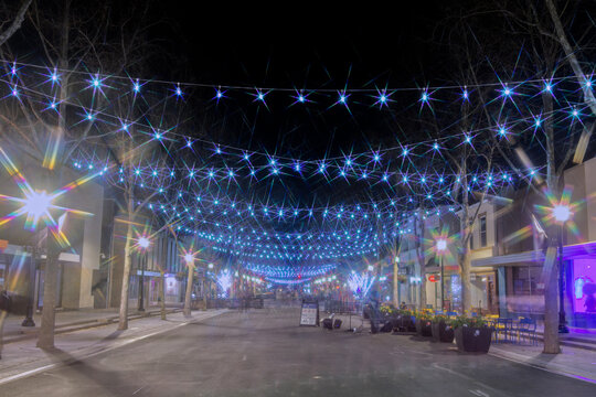 Silicon Valley's Mountain View's Castro Street at Night with Eight Point Stars