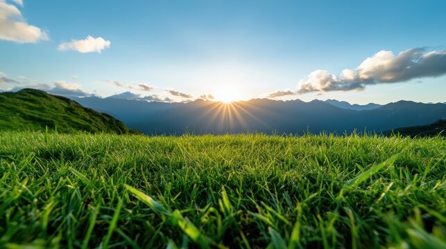 A breathtaking view of a vibrant sunrise illuminating a majestic mountainous landscape, showcasing the beauty of nature and the promise of a new day on a clear morning.