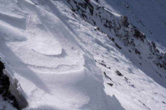 Vibrant red ice cream cone on snowy mountainside at sunset