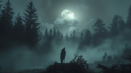 Roaming mistshrouded forests of the Pacific Northwest a solitary wolf howls beneath the light of the full moon its mournful cry echoing through the ancient trees