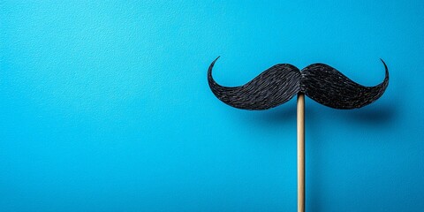 A playful black mustache on a stick against a light blue background, perfect for Mental Health Day promotions and Movember campaigns focused on awareness and healthy lifestyles.