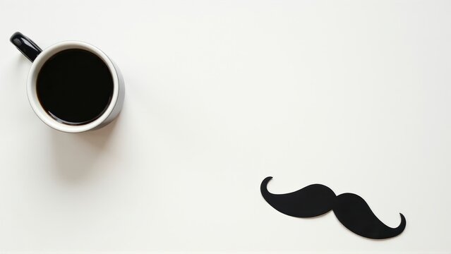 Close up of realistic black mustache with curled end and smooth hair texture on light background. Masculine style, Movember, vintage fashion and grooming concept. Ideal for branding and ads.