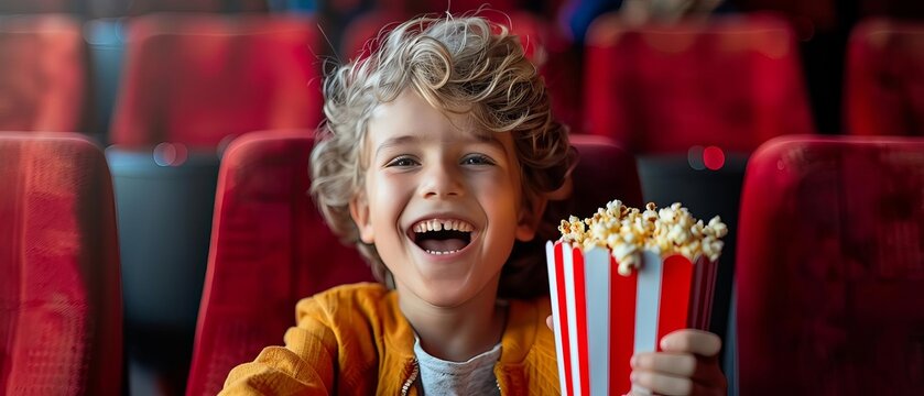A lively scene with a movie clapperboard and a tub of popcorn on a blue background, depicting a cinema and entertainment theme.