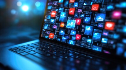 Exploring movie genres and digital chaos on a laptop screen