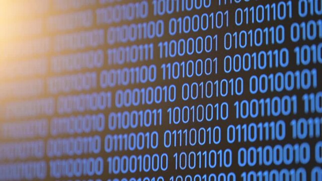 Blue binary code moving down the screen. A screen with blue binary computer code moving downwards on a black background