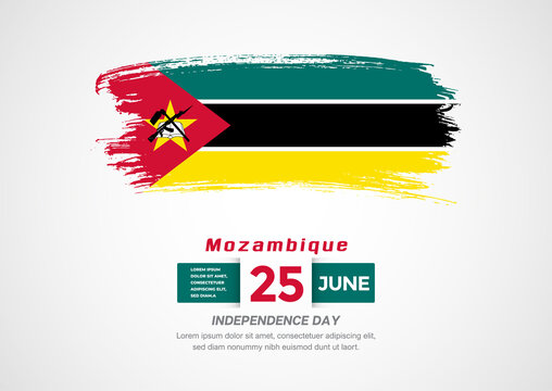Mozambique independence day celebration with national flag and brush stroke background art