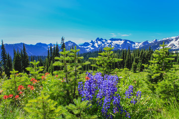 Summer Hike at Mount Rainier National park with view of Mt.Rainier.