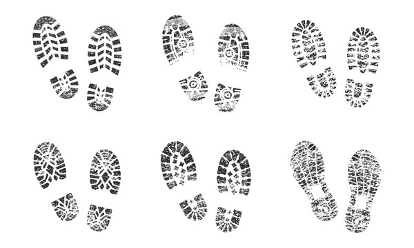 Collection of different abstract black grunge shoe prints