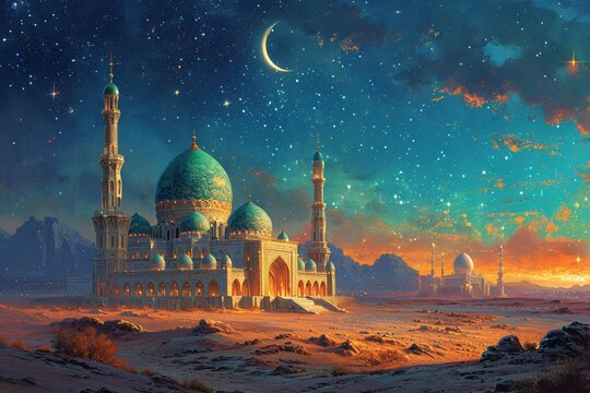 Arabian Nights: A Moonlit Night at the Grand Mosque Generative AI
