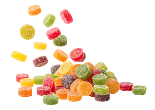 Scattered small candies isolated. Colorful dragees, multicolored glazed chocolate buttons