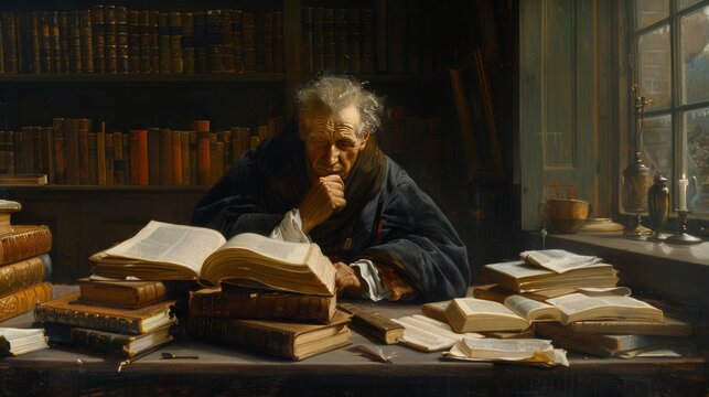 The Pyramid of Knowledge: A Towering Structure of Books Against a Snowy Mountain Backdrop, Illuminated by a Bright Sky and an Ancient Stone Archway