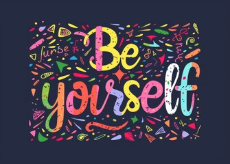 The logo consists of abstract shaped forms, with the text "Be yourself" in rainbow colored with black background