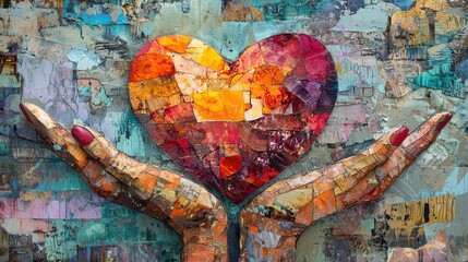 Colorful Heart in Caring Hands Abstract Art