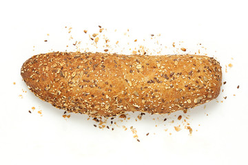 Close up on a set of multigrain bagel. Isolated on wooden plank background.