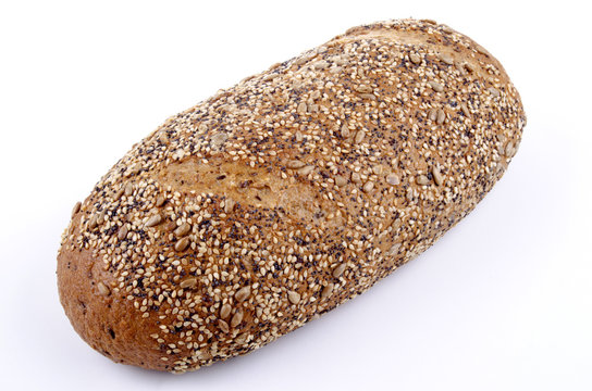 Freshly sliced multigrain bread with avocado on rustic wooden board