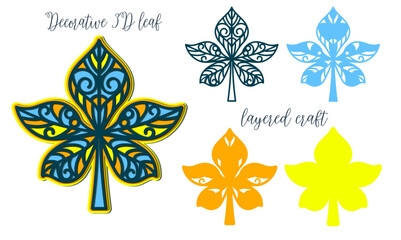 Natural multi-layer decorative craft multi-layer openwork leaf. 3D design for laser cutting.