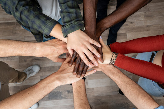 Diversity hands of different skin tones. United Community. Concept of community, support, social movement, friendship .Vector illustration