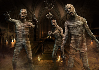 Scary screaming mummies attacking.