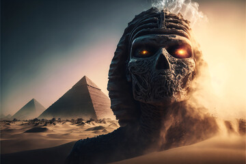 Undead mummy pharaoh with sand and pyramids. Designed using generative ai.