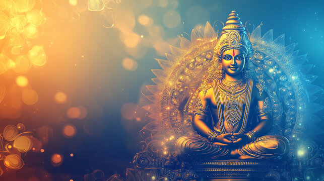 Thaipusam banner with blue and gold gradient, background decorated with image of Lord Murugan and decorated kavadi, Ai generated images