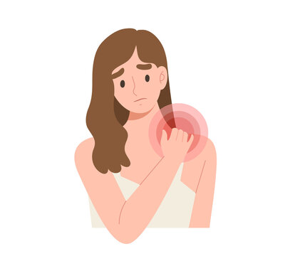 woman having muscle painful pain syndrome shoulder and neck pain.  rheumatism, fibromyalgia ,  cervical spine. scapular pain.