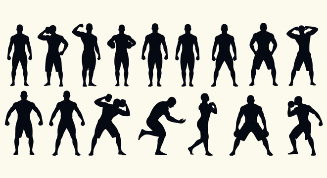 Diverse Silhouettes of Male Athletes in Various Poses and Sports Actions.