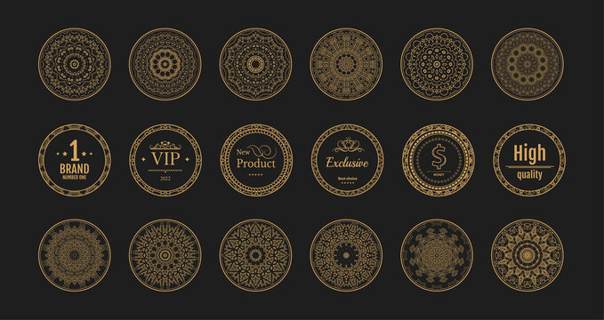 Vintage set decor elements for wedding cards, decorating valentines, vector framing title of different printed products. Vintage patterns, frames and weaves on a white background. Exclusive brown icon