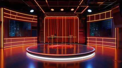 Technician with Headset Directing Event Neon Lights Stage  Concert Show