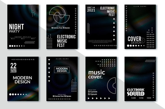 Template design abstract poster. Cover with glitch and destroyed effect. Gradient shape and line. Party banners concept. Future style. Vector