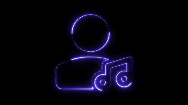 Neon glowing music icon with person silhouette abstract background digital animation concept for music streaming