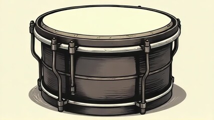 A drawing of a black drum with a white top, suitable for use in designs related to music or cultural events
