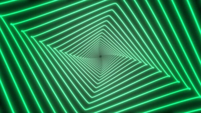 Green neon light tunnel perfect for futuristic designs, technology concepts, virtual reality themes, or music event backgrounds. Vibrant and dynamic.