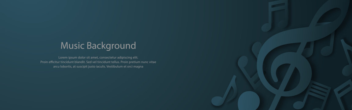 Musical banner set with colored key notes. Abstract music background. Vector paper illustration.