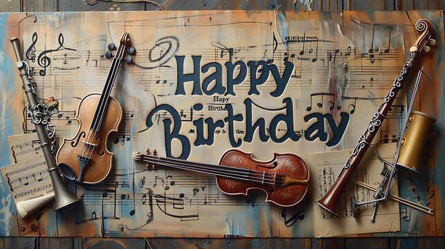 Musical Birthday Wishes: Happy Birthday in Music Notes with Instruments and Sheet Music
