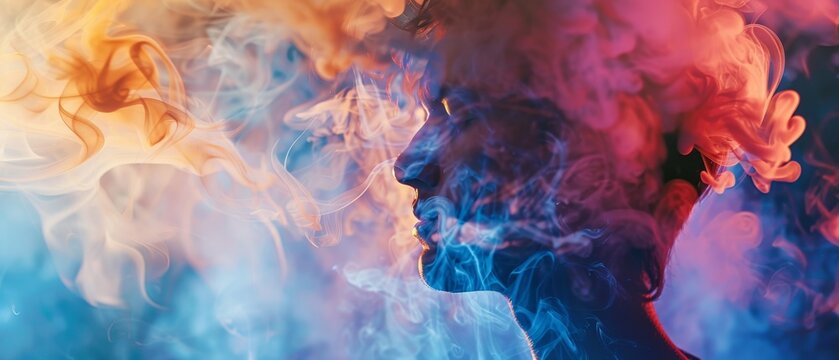 Abstract image of man and smoke evoking introspection for a mindfulness meditation app background