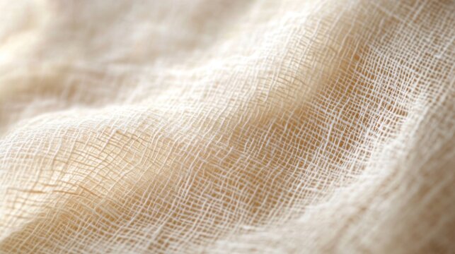 Muslin cloth texture background in neutral tones. Muslin cotton fabric of plain weave. Muslin is a soft, woven, 100-percent cotton multi-layer cloth popular for baby cloths and blankets