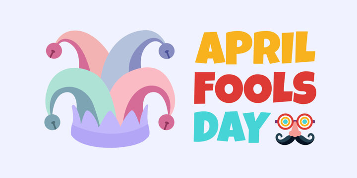 April fools day with colorful jester hat, funny glasses, and mustache illustration vector background design for april fools day event.