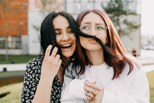Joyful women celebrating hen party with colorful drinks and fun attire