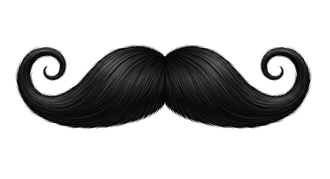 Isolated black curly mustache vector drawing, funny mask element, hair details, retro style