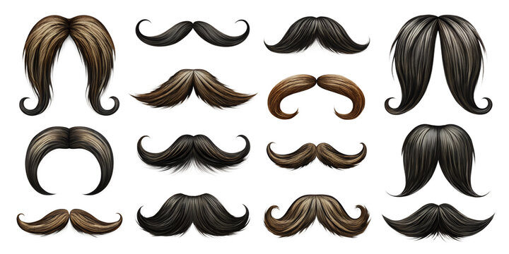 Man's mustache is shown in full length, with a lot of hair. 3d isolated illustration on transparent background