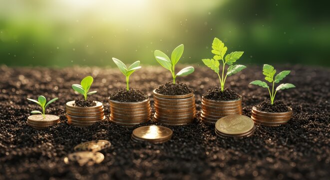 Plant money coins saving growth up to profit interest for concept investment mutual fund finance and business