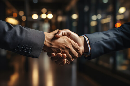 Close up of two businessmen shaking hands, creating a partnership based on trust and mutual respect
