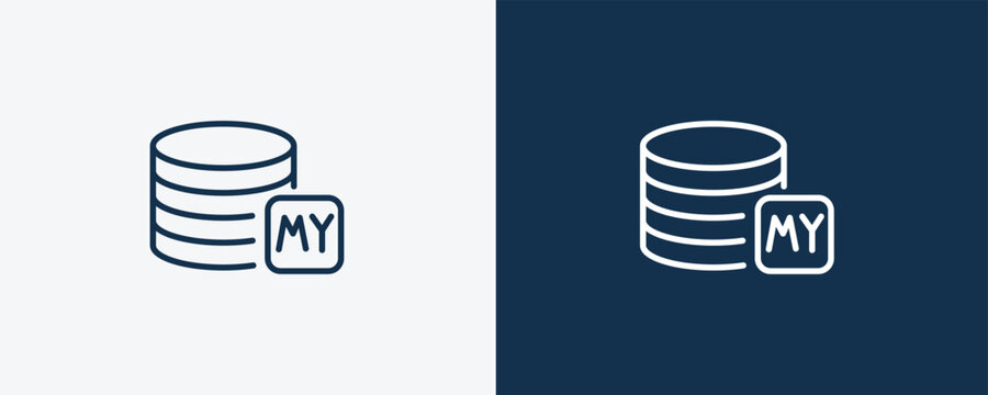 mysql icon. Outline mysql icon from information technology collection. Linear vector isolated on white and dark blue background. Editable mysql symbol.