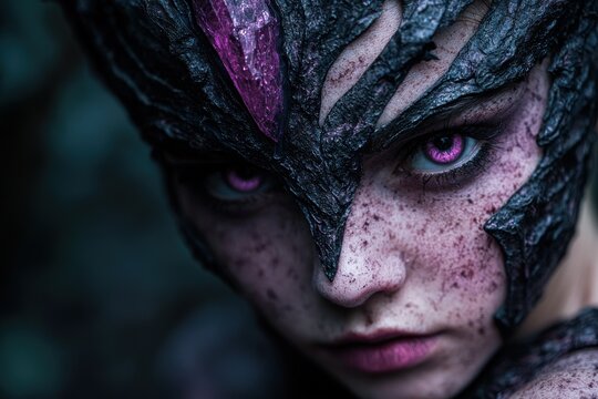 A mysterious figure wearing a hood holds a phone, with glowing eyes, surrounded by a dark, eerie forest.