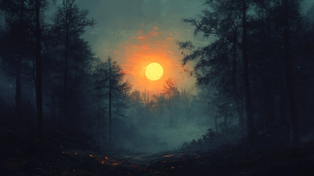 Mysterious creature made of tangled roots and bones rising from a misty landscape at dusk with an eerie glowing presence