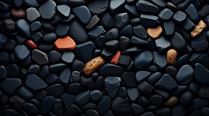 An untamed expanse of pebbles and gravel scattered across the rugged outdoor ground, as dark and mysterious as the group of black rocks that command its presence